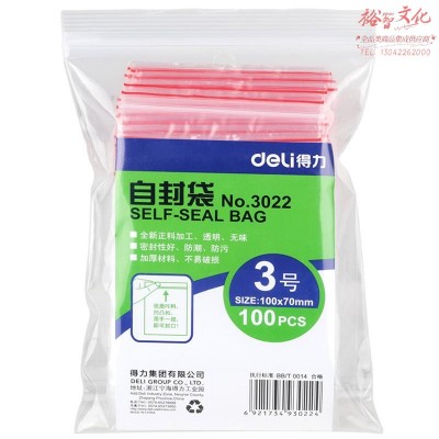 得力(deli)3022自封袋(透明)-3号(100个/包)100x70mm0.04mmSKU:yzwhyp972154