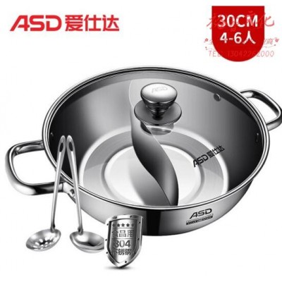 爱仕达 ASD 火锅304不锈钢鸳鸯锅30CM火锅盆汤锅加厚锅具电磁炉通用FS30A2WG送汤勺漏勺SKU:yzwhyp972344