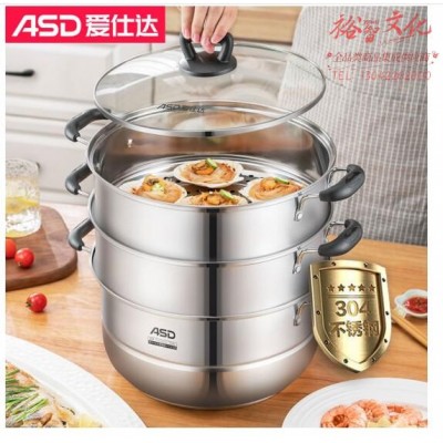 爱仕达 ASD 蒸锅三层304不锈钢蒸锅家用多层蒸笼28CM加厚复底电磁炉燃气煤气灶通用锅具ZS28A3WGSKU:yzwhyp972450