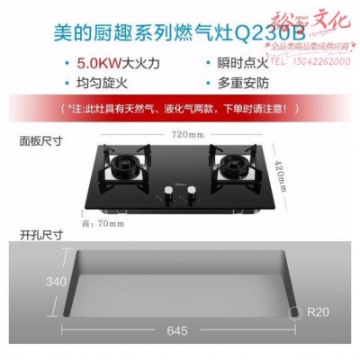 美的(Midea)JZT-Q230B燃气灶5.0KW大火力防爆钢化玻璃面板六年质保九档精控台嵌两用双灶(天然气) SKU:yzwhyp972499