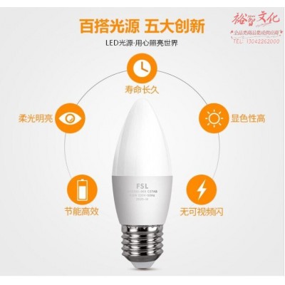 佛山/FSL LED C37晶亮系列灯泡 5.5W 2700K 尖泡 SKU:SKU:yzwhyp972816