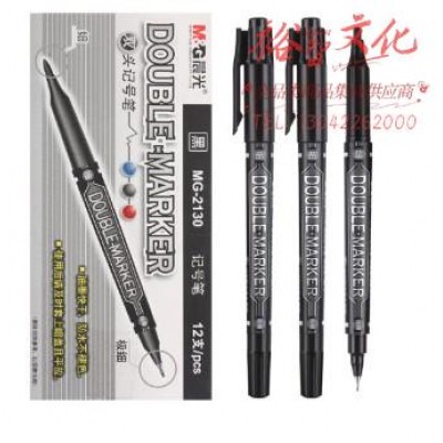 晨光 M&G 小双头记号笔 MG-2130 细头2.0mm,极细头0.5mm (黑色) 12支/盒 SKU:yzwhyp972897