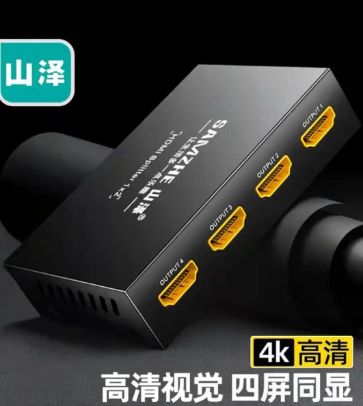 山泽 HDMI分配器 一进四出 4K数字高清视频 一分四分屏器 笔记本电脑机顶盒接显示器投影仪 HV-504W SKU:yzwhyp972939