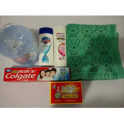 洗漱套装(包含毛巾/漱口杯/沐浴露/洗发水/牙膏/上海皂)