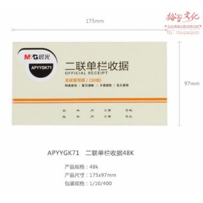 晨光二联单栏收据48K APYYGK71 SKU:yzwhyp973714