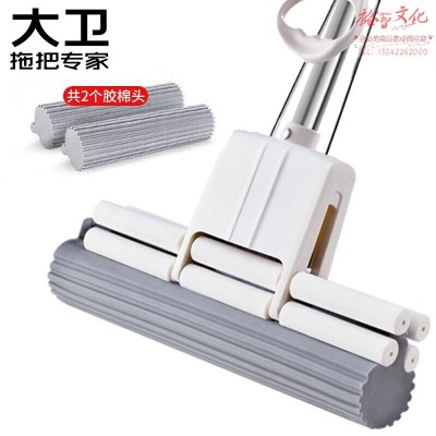 大卫滚轮式大号胶棉拖把海绵吸水地拖家用拖布免手洗墩布M9plus 1杆2头SKU:yzwhyp973865
