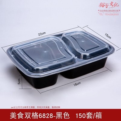 鑫利和一次性餐盒长方双格黑色餐盒1000ml带盖餐具150套/箱整箱起送SKU:yzwhyp973933