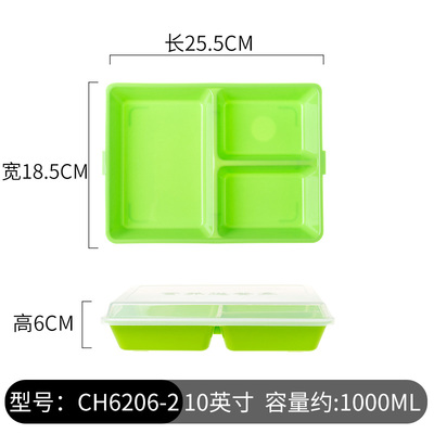 餐盒饭盒 学生食堂快餐盘可微波炉加热 长方形带盖便当盒三格 1000ML (白、绿、橙颜色备注)SKU:yzwhyp973944