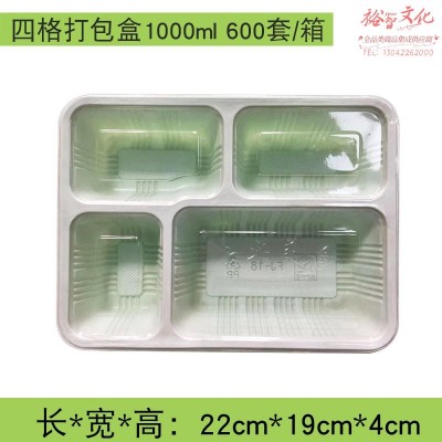 苏洁一次性餐盒长方四格绿色餐盒1000ml带盖餐具600套/箱整箱起送SKU:yzwhyp973949
