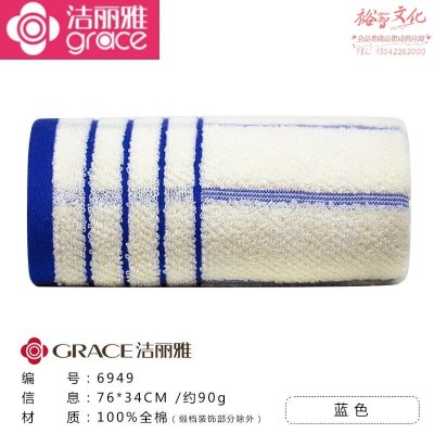 洁丽雅 6949 毛巾纯棉素色新疆棉 黄蓝绿三色可选 6949蓝色SKU:yzwhyp973955