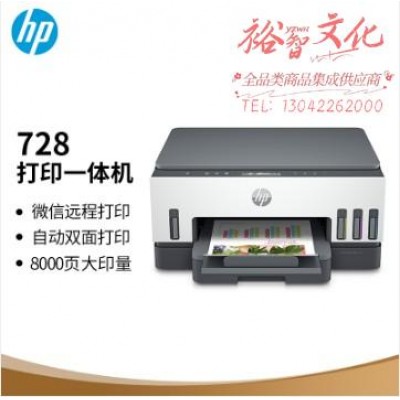 惠普(HP)728 连供无线打印一体机 自动双面三合一彩色打印机家用 打印复印扫描商用办公单页成本1分钱 SKU:SKU:yzwhyp974314