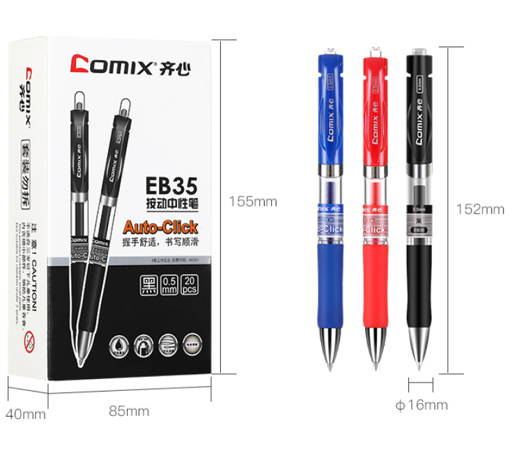 齐心(Comix)中性笔签字笔按动笔子弹头/水笔/0.5mm会议签字笔 黑色 20支装 EB35 SKU:yzwhyp975245