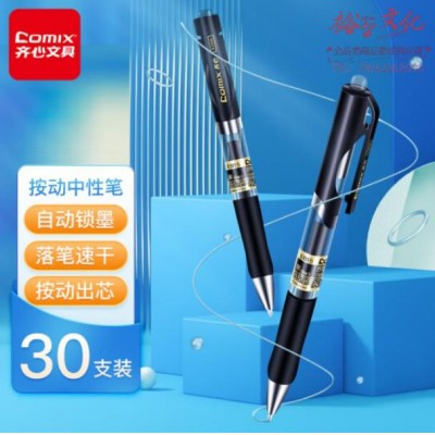 齐心(Comix) 顺滑中性笔签字笔按动笔按压水笔 0.5mm子弹头办公用品 黑色 30支/盒 EB15 SKU:yzwhyp975253