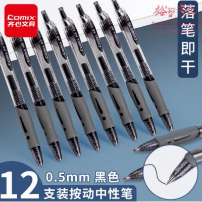 齐心(Comix)顺滑速干中性笔按动签字笔水笔办公文具 0.5mm子弹头 黑色 12支装 EB18 SKU:yzwhyp975292