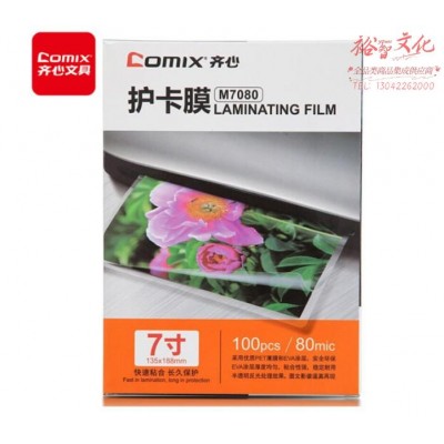 齐心(Comix) 100张/盒 7寸 80MIC M7080 透明高清照片塑封膜 相片护卡膜 过塑膜SKU:yzwhyp975336
