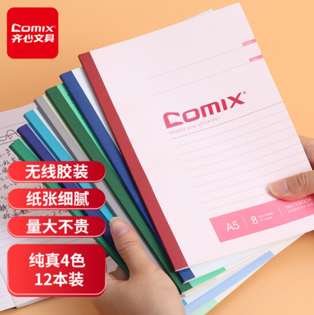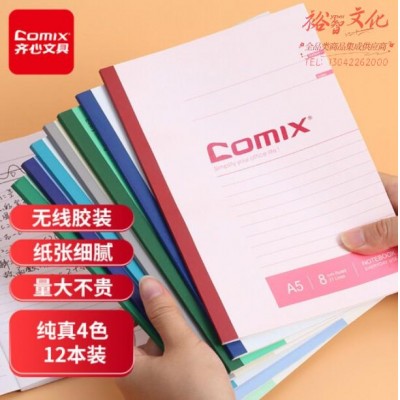 齐心(Comix) A5/40张笔记本子文具办公用品记事本混色装无线装订软抄本 12本装C4503 SKU:yzwhyp975373