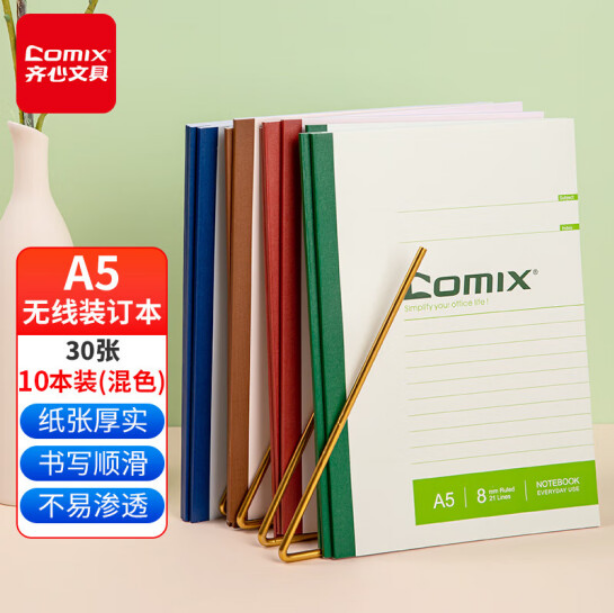 齐心(COMIX)A5/30张软面抄笔记本子文具/软抄本/记事本 10本装 C4502 SKU:yzwhyp975374