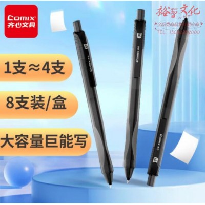 齐心(Comix) 按动巨能写中性笔 0.5mmST尖 办公中性笔学生水笔 黑色 8支装 GP128 SKU:yzwhyp975375