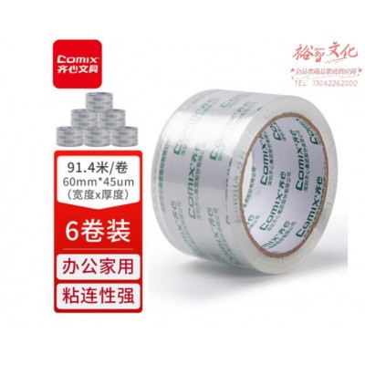 齐心(Comix)透明胶带封箱胶带JP6010-6 宽60mm*100y*45um 长91.4米/卷 6卷装SKU:yzwhyp975471