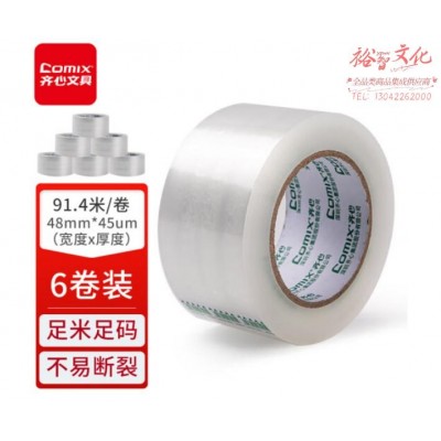 齐心(Comix)透明胶带封箱胶带JP4810-6 宽48mm*100y*45um长91.4米/卷 6卷装SKU:yzwhyp975478