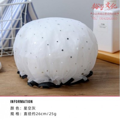 洁丽雅(Grace)浴帽防水双层洗澡头套沐浴帽发套厨房防油烟帽 星空灰1只装SKU:yzwhyp975656