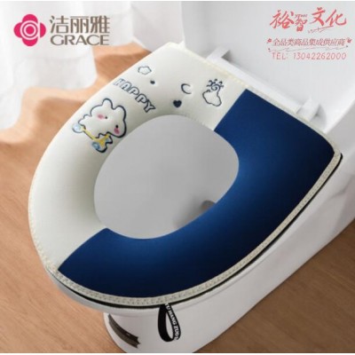 洁丽雅(Grace)马桶垫 2个装 拉链式加厚坐便垫马桶圈带提手SKU:yzwhyp975671