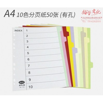易利丰 分页纸 隔页纸 分类纸 index索引纸 活页纸 纸质塑料数字英文三孔夹专用【有孔】10色分页纸50张1包装SKU:yzwhyp975672