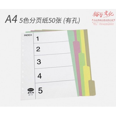 易利丰 分页纸 隔页纸 分类纸 index索引纸 活页纸 纸质塑料数字英文三孔夹专用 【有孔】5色分页纸50张1包装SKU:yzwhyp975674