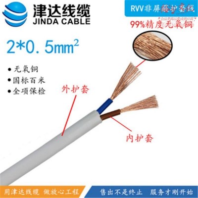 津达 RVV-2*0.5平方圆 100米/盘 电缆 护套线 SKU:yzwhyp975759