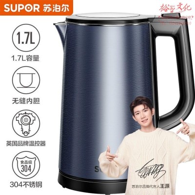 苏泊尔(SUPOR)电水壶 双层防烫烧水壶热水壶 全钢无缝内胆电热水壶SW-17J15B 1.7L大容量 SKU:yzwhyp975858