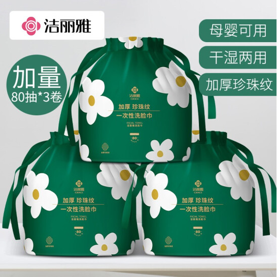洁丽雅(Grace)一次性洗脸巾MRJ316-3加厚珍珠纹20*20cm 80抽/卷 3卷装SKU:yzwhyp975882