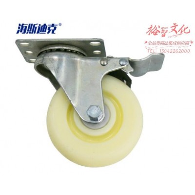 海斯迪克 gnjz-105 白色加厚尼龙轮 工业脚轮 推车轮子 5吋重型 万向带刹SKU:yzwhyp975964