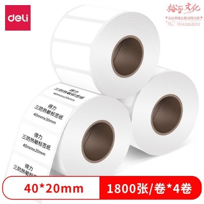 得力40*20mm双防热敏标签打印纸 电子面单标签不干胶打印纸电子称条码纸 4卷(1800张*卷)12315 SKU:yzwhyp976502