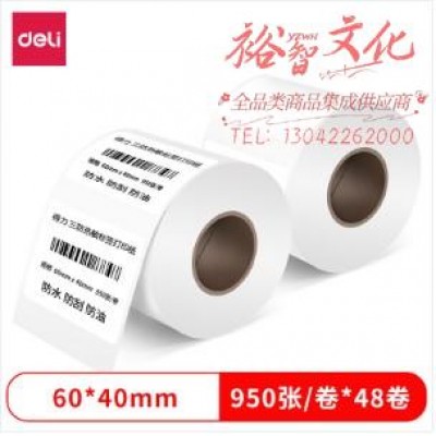 得力 60*40mm双防热敏标签打印纸 电子面单标签不干胶打印纸电子称条码纸 2卷(950张*卷)12302 SKU:yzwhyp976504