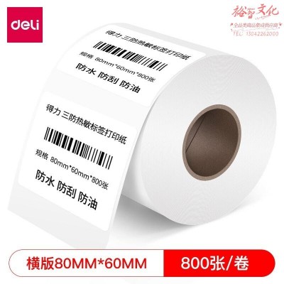 得力 80*60mm双防热敏标签打印纸 电子面单标签不干胶打印纸电子称条码纸 1卷(800张*卷)12306 SKU:yzwhyp976510