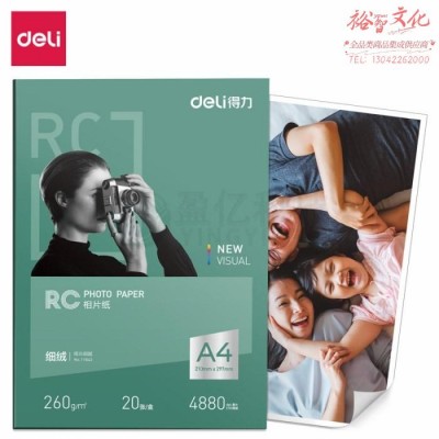 得力11843细绒RC相片纸-A4-260g/㎡(白)210*297mm (20张/盒)SKU:yzwhyp976523