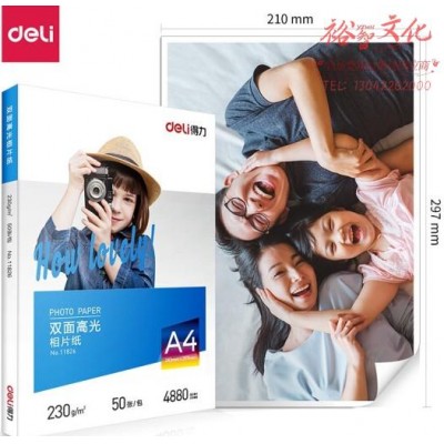 得力 11826 A4 230g 双面高光照片纸 相片打印纸 50张/包 SKU:yzwhyp976549