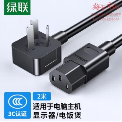 绿联CD133/30566 国标三插电源线 10A 黑色2米 品字尾弯头SKU:yzwhyp976614