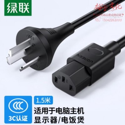 绿联CD133/80770 国标三插电源线 10A 黑色 1.5米 品字尾直头SKU:yzwhyp976635