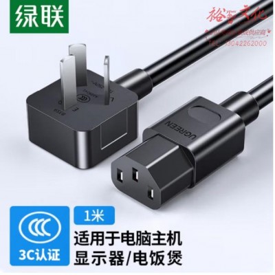 绿联CD133/30564 国标三插电源线 10A 黑色 1米 品字尾弯头SKU:yzwhyp976637