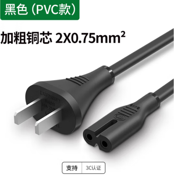 绿联CD159/40311 国标两插电源线 10A 黑色 0.5米 SKU:yzwhyp976649