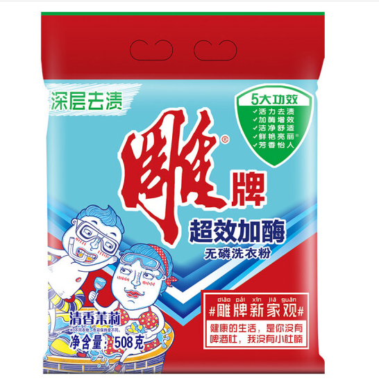 首页 > 装具 > 盥洗、厨房用织物制品 > 雕牌(DIAOPAI)洗衣粉508g 12袋/件 SKU:yzwhyp976959