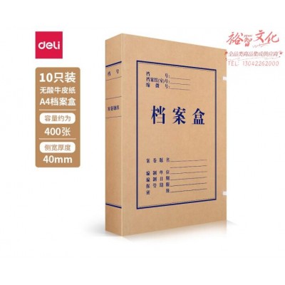 得力5611无酸牛皮纸档案盒(棕黄)(10个/包)SKU:yzwhyp977005
