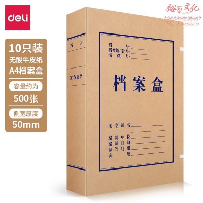 得力5612无酸牛皮纸档案盒(棕黄)(10个/包) SKU:yzwhyp977187
