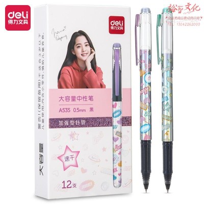 得力A535学生中性笔加强型针管0.5mm速干(黑)(支)颜色随机SKU:yzwhyp977199