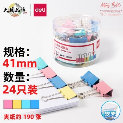 得力 8552ES彩色长尾票夹筒装(混)(24只/筒)SKU:yzwhyp977215