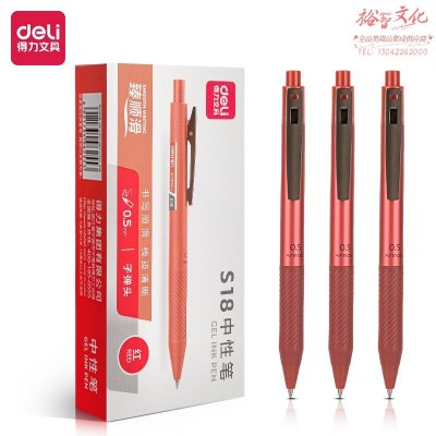得力S18 按动办公中性笔0.5mm子弹头(臻顺滑)(红)(12支/盒) SKU:yzwhyp977238