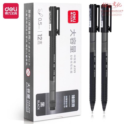 得力A199 臻顺滑中性笔0.5mm加强型针管(黑)(12支/盒) SKU:yzwhyp977243