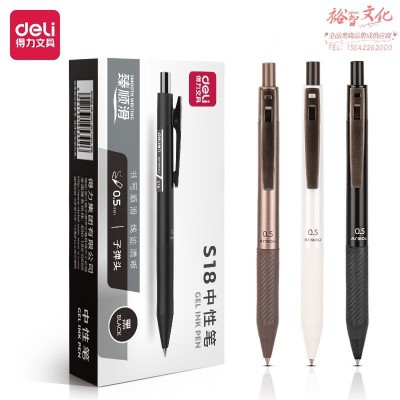 得力S18 按动办公中性笔0.5mm子弹头(臻顺滑)(黑)(12支/盒) SKU:yzwhyp977309
