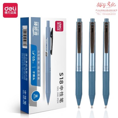 得力S18 按动办公中性笔0.5mm子弹头(臻顺滑)(蓝)(12支/盒) SKU:yzwhyp977310